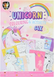Carte plină de desene de colorat și activități cu tema Unicornilor, care aduce distracție desenând, colorând și lipind autocolante pe 64 de pagini.