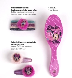 Setul de periat cu motiv Minnie este modalitatea perfectă de a încânta micuțele stiliste. Conține tot ce au nevoie pentru o coafură stilată:
