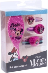 Bucurați micuțele stiliste cu un set de periere strălucitor cu motivele șoricelului vesel Minnie, care conține 8 piese, incluzând o perie de păr, elastice și agrafe.