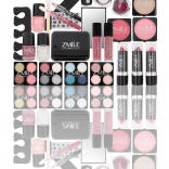 Într-o singură trusă obții 16 farduri de pleoape, 2 farduri de obraz, pudră, 3 rujuri, creion de ochi, 4 luciuri (2 clasice + 2 cremoase), 3 lacuri de unghii și accesorii pentru îngrijirea unghiilor.