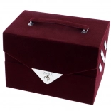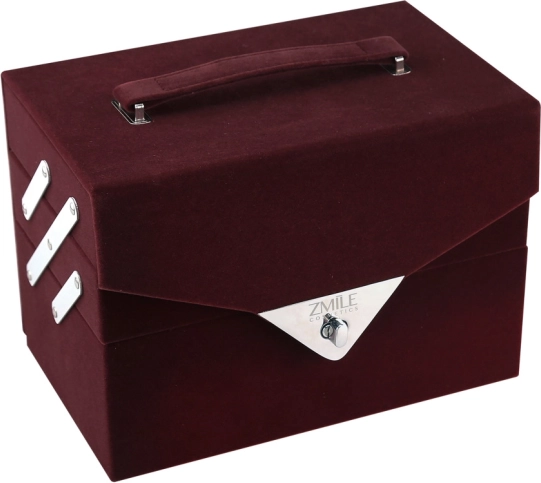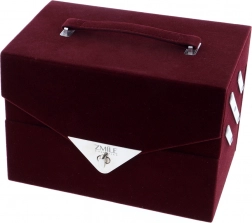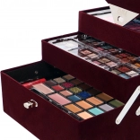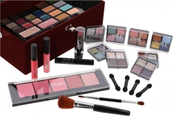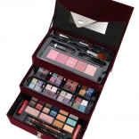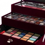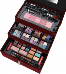 Trousă de machiaj catifelată Beauty Case Velvety – catifelată, vișiniu închis – în total 74 de piese accesorii. Conține 32× farduri de pleoape în 4 casete compacte, 5× fard de obraz, 3× fard pentru sprâncene, 1× ceară pentru sprâncene, 4× farduri de ochi cremoase, 4× cremă cu sclipici, 2× baze pentru fardul de ochi, 8× corector, 2× luciu de buze, 1× ruj, 1× rimel, 1× creion dublu pentru ochi, 1× creion dublu pentru buze, 1× pensulă pentru fard de obraz, 1× pensulă dublă pentru farduri, 4× aplicator dublu, 1× oglindă integrată. Testat dermatologic, conform normelor stricte ale UE.