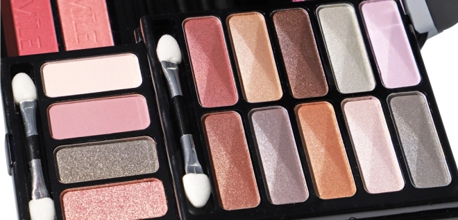 - Echipare completă într-un singur set: farduri, farduri de obraz, luciuri, pudre, creion, instrumente.