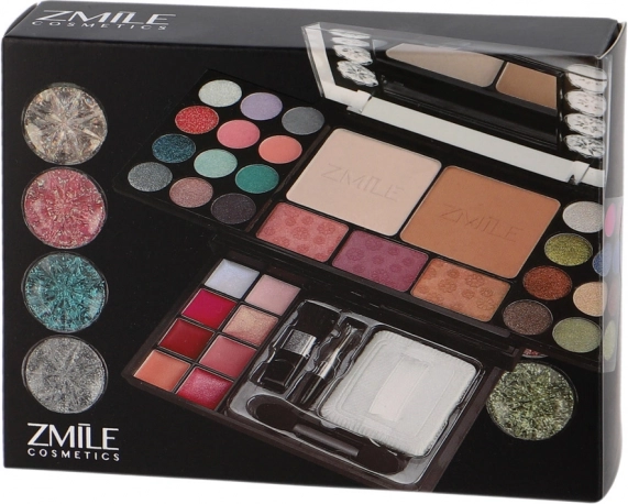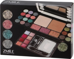 Paletă cosmetică universală ZMILE Diamonds pentru machiaj zilnic și de seară, care oferă 16 farduri de pleoape, 8 glossuri cremoase pentru buze, 8 creme cu sclipici și 2 pudre. Ambalaj practic cu oglindă integrată și aplicatoare/pensulă, ideal pentru călătorii, testat dermatologic și conform standardelor stricte ale UE.
