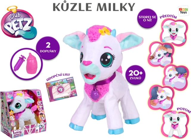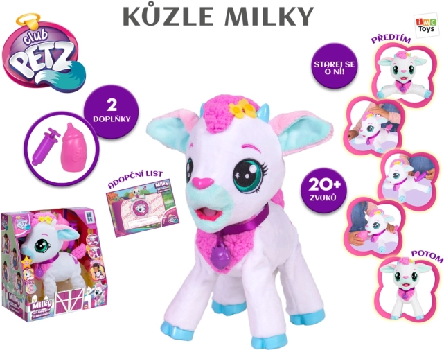 Căprița Milky este echipată cu până la 20 de sunete diferite, care reacționează la atingere și manipulare, oferind experiențe realiste.