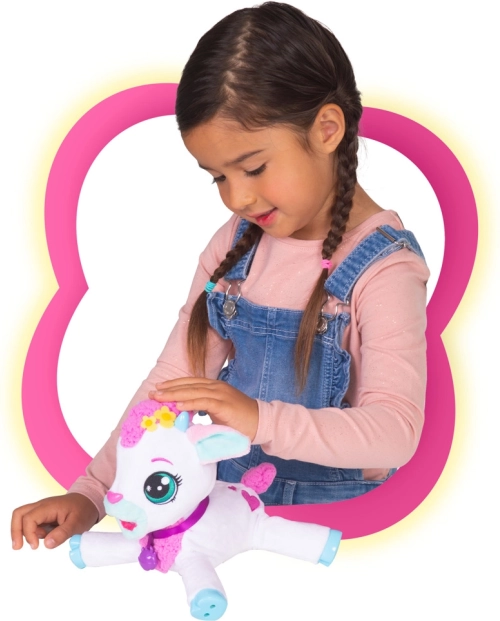 Copiii dvs. se vor îndrăgosti de acest mic căprițor interactiv minunat, care reacționează la atingere și oferă ore nesfârșite de distracție. Îngrijiți căprița mângâind-o pe cap, hrănindu-o cu biberonul și chiar vaccinând-o. Datorită elementelor interactive, căprița se ridică pe toate cele patru labe, imitând un animal real.