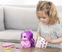 Cu ajutorul agrafelor și elasticelor de păr, copiii pot decora coama după imaginația lor și pot adăuga detalii atrăgătoare folosind autocolantele cu tematică Pipp. Această jucărie garantează ore întregi de distracție și este destinată copiilor de la 3 ani.