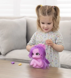Părul lung violet al prințesei Pipp este pregătit pentru ajustări și styling după dorințele tale.