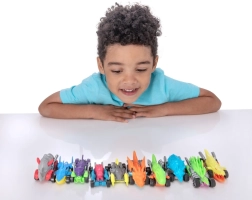 Excelente ca cadou și pentru colecție. În asortiment găsiți până la 20 de designuri originale, pe care copiii adoră să le schimbe cu frații sau prietenii. Joaca cu mașinuțele dezvoltă în mod firesc motricitatea fină, abilitățile de coordonare și colaborarea.