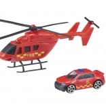 Elicopterul roșu al pompierilor și vehiculul de intervenție aduc povești palpitante de salvare. Rotorii acționați manual dau viață fiecărei operațiuni de stingere și evacuare.