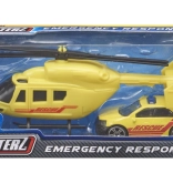 Descoperiți setul pentru copii TEAMSTERZ cu un elicopter și o mașină de intervenție, pentru ore întregi de joacă imaginativă. Setul oferă 3 teme – poliție, pompieri și salvatori, pale de rotor acționate manual și roți care se rotesc liber. Părțile metalice asigură durabilitate, dimensiunea ideală se potrivește mâinii copilului și stimulează imaginația și motricitatea fină. Potrivit de la 3 ani.