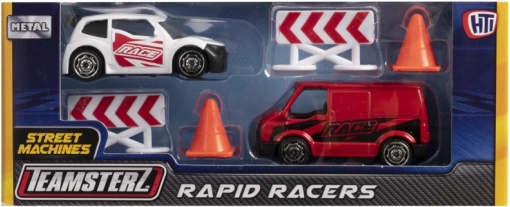 Pregătiți‑vă pentru curse acasă sau în deplasare. Setul TEAMSTERZ RAPID RACERS combină o mașinuță metalică realizată realist și un camion de asistență pentru curse, cu accesorii care le permit copiilor să își construiască ușor propria pistă și să încerce diferite scenarii de cursă. Dimensiunea compactă de 3″ este ideală atât pentru mâinile mici, cât și pentru colecționari.