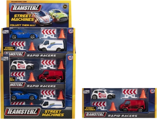 Modelele din gama Street Machines se remarcă prin caroseria turnată sub presiune, construcția durabilă și deplasarea lină. Setul include și 2 conuri de trafic și 2 bariere direcționale pentru un joc și mai realist. Disponibil în culori și stiluri variate (asortiment).