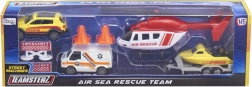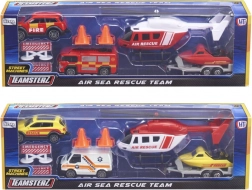 Setul Teamsterz Echipa de Salvare Air & Sea transformă camera copilului într-o zonă de acțiune plină de misiuni curajoase. Vehiculele foarte detaliate, cu caroserie metalică și accesorii din plastic, rezistă jocului intens și, datorită roților cu rulare liberă, se deplasează ușor pe orice suprafață. Elicopterul cu pale rotite manual oferă fiecărei intervenții efectul realist potrivit.