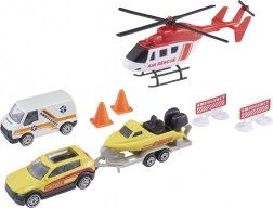 - Pachetul conține: elicopter, vehicul de intervenție, 4×4 cu dispozitiv de tractare, barcă sau skijet cu remorcă detașabilă, conuri rutiere și indicatoare de urgență.