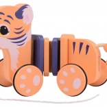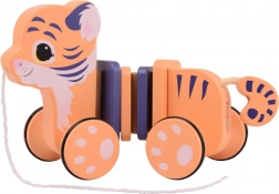 Această jucărie de tras din lemn, veselă și de calitate, este echipată cu roți în loc de picioare, ceea ce permite o mișcare lină atunci când este trasă de șnur. În timpul deplasării, corpul său se unduiește datorită dreptunghiurilor colorate de pe spate, ceea ce atrage atenția copiilor și sprijină recunoașterea culorilor. Jucăria este fabricată din lemn certificat FSC, ceea ce garantează că provine din păduri administrate sustenabil.
