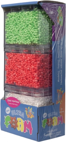Mini pachetul Ultra Foam conține trei culori: verde, roșu și alb, pe care le puteți combina și crea diverse forme.