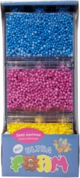 Material de modelat inovativ netoxic Ultra Foam în ambalaj de trei culori - albastru, violet și galben. Potrivit pentru copii de la 3 ani, dezvoltă imaginația, nu se usucă și nu lasă mizerie.