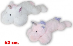Acest unicorn fermecător din pluș moale impresionează prin postura culcată și designul versatil. Datorită lungimii de 62 cm, este perfect pentru îmbrățișat, pentru joacă și ca element decorativ de impact în camera copilului.