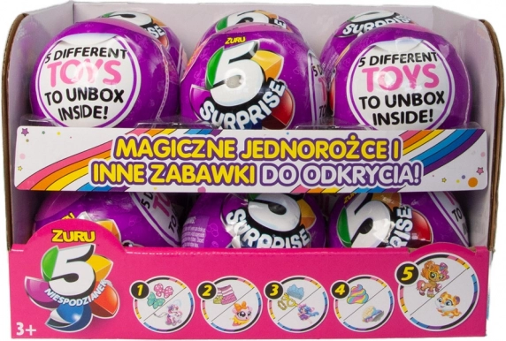 Intrați în lumea misterioasă cu 5 Surprise Seria 2. Aceste bile sunt alegerea ideală pentru copiii care adoră surprizele și descoperirea de noi jucării. Fiecare bilă conține cinci compartimente separate, pe care le puteți deschide cu ușurință și dezvălui adevărate comori, de la figurine la accesorii. Jucăria este ambalată în folie opacă, ceea ce crește tensiunea și curiozitatea în momentul deschiderii.