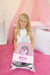 Designul inspirat de povești și combinația de culori roz și gri vor atrage orice mică prințesă.