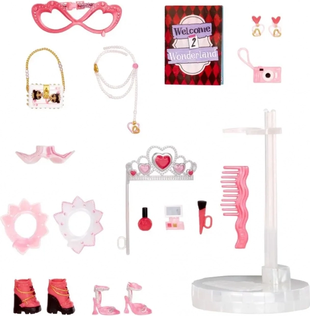 În pachet găsești peste 15 surprize, inclusiv accesorii, pantofi, bijuterii, ochelari și coroniță. În plus, ambalajul se transformă ușor într-o scenă de joc practică – ideală pentru joacă instant și expunerea păpușii.