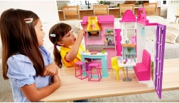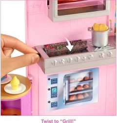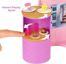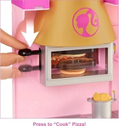 Copiii pot face parte din acțiunea din restaurantul Barbie, unde pot ajuta păpușa Barbie® (*nu este inclusă*) să preia comenzi și să asigure locuri confortabile pentru oaspeți. Cu șase suprafețe de joc, există multe oportunități de a spune povești.
