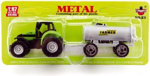 Model de tractor cu roți mari negre și un rezervor gri, denumit 'FARMER'.