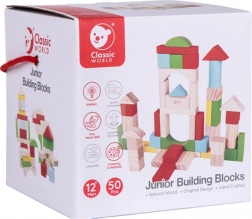 Descoperiți o lume plină de distracție și învățare cu cuburile de lemn Classic World, concepute pentru jocul sigur al copiilor mici. Aceste cuburi nu au margini ascuțite, asigurând astfel siguranța micilor constructori.