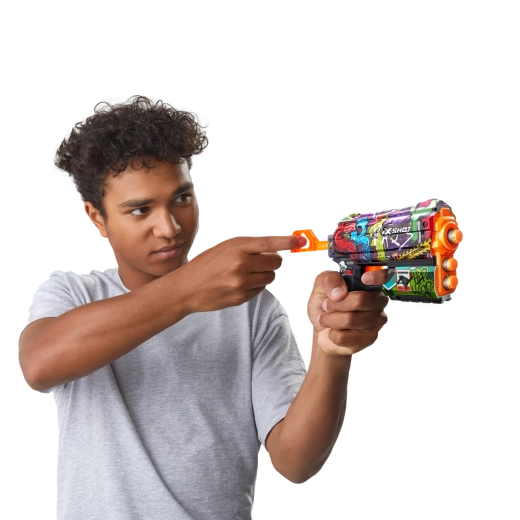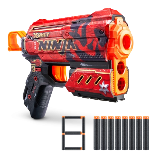 X-SHOT Skinsmenace – Prima ta armă sigură și 8 proiectile în set. Distanță de tragere de până la 27 m