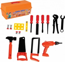 - Set de 34 de piese: bormașină, șurubelniță, fierăstrău, cheie, ciocan, clește și diverse elemente de îmbinare.