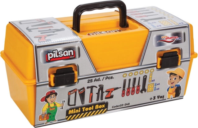 Setul de unelte pentru copii Pilsan aduce 34 de piese sigure pentru micii meșteri de la 3 ani. Conține bormașină, șurubelniță, fierăstrău, cheie, ciocan, clește și alte accesorii, precum și o placă de montaj pentru înșurubare. Susține motricitatea fină, creativitatea și joaca plină de imaginație în jocurile de rol realiste de mici meșteșugari.