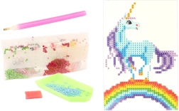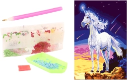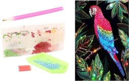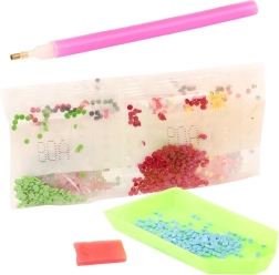 Pictura cu diamante este o tehnică distractivă și liniștitoare, prin care, folosind aplicatorul, transferi mici „diamante” pe o pânză autoadezivă conform codului imprimat. Pietricelele sunt sortate în punguțe după litere și simboluri, astfel încât știi exact unde se potrivește fiecare piesă. Rezultatul este o imagine strălucitoare de 10 × 15 cm, care îți va decora camera sau va fi un cadou plăcut.