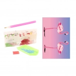 În pachet găsești tot ce ai nevoie pentru a crea: aplicator (stilou), pernuță de ceară pentru preluarea ușoară a pietricelelor, tăviță pentru sortare și punguțe cu pietricele colorate. Setul este potrivit pentru copii de la 5 ani și susține răbdarea, motricitatea fină și concentrarea.