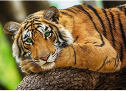 Acest puzzle oferă un portret realist al tigrului, care impresionează prin intensitatea culorilor și detalii fine. Hârtia calandrată cu vopsele ecologice pe bază de alimente asigură calitate și siguranță înaltă în timpul asamblării.