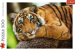Puzzle cu un portret fascinant al tigrului format din 500 de piese. După asamblare, creează o imagine cu dimensiunile de 48x34 cm. Ideal pentru iubitorii de animale și de puzzle-uri.