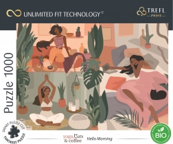Bucură-te de relaxare asamblând puzzle-ul TREFL UFT Yoga, Cats & Coffee – Bună dimineața cu 1000 de piese. Datorită Unlimited Fit Technology poți conecta liber motivele din serie și crea colaje mari fără limite. Puzzle-ul din carton albastru de înaltă calitate cu forme unice ale pieselor se menține ferm laolaltă și se transportă ușor. Ambalajul ecologic bio fără folie de plastic va bucura orice iubitor al sustenabilității.