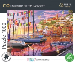 Descoperă puzzle-ul posibilităților nelimitate cu Trefl UFT Vacay Time: seară de vară (1000 piese). Datorită Unlimited Fit Technology poți combina mai multe motive într-o singură colajă mare. Te așteaptă calitate superioară din carton albastru, forme unice ale pieselor și îmbinare solidă, care permite mutarea ușoară a imaginii finale. În plus, în ambalaj eco fără plastic.