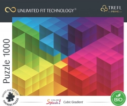 Descoperă construcția nesfârșită cu puzzle-ul TREFL UFT Color Splash, cu motiv de gradient pătrățit, din 1000 de piese. Datorită tehnologiei Unlimited Fit Technology, poți conecta liber diferite motive într-un colaj mai mare. Puzzle-urile sunt fabricate din carton albastru rigid, fiecare piesă are o formă unică, iar imaginea asamblată se poate transporta ușor fără să se împrăștie. Ambalajul bio ecologic, fără folie de plastic, îi va bucura pe toți cei care se gândesc la planetă.