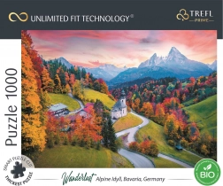 Cufundă-te în atmosfera pitorească a versanților Alpilor. Acest motiv, cu un drum șerpuitor, o mică biserică și frunziș tomnatic colorat pe fundalul munților înzăpeziți, încântă ochiul și mintea. Datorită tehnologiei Unlimited Fit Technology (UFT), imaginile din aceeași serie pot fi conectate cu precizie pentru a crea colaje mari și originale, fără limite.