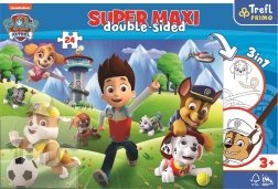 Puzzle dublă față Patrula Cățelușilor de la brandul Trefl oferă copiilor nu doar distracție la asamblare, ci și activități creative prin posibilitatea de a colora și a juca jocuri pe cealaltă parte.