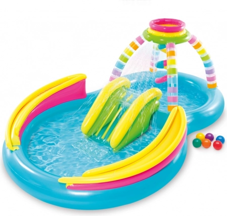 Descoperiți bucuria și răcoarea cu centrul nostru de joacă în frumosul design curcubeu. Copiii dumneavoastră se vor bucura de ore întregi de distracție datorită elementelor multifuncționale pe care acest centru le oferă: