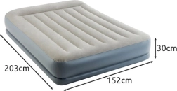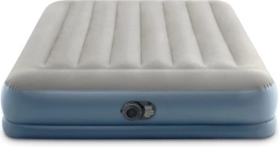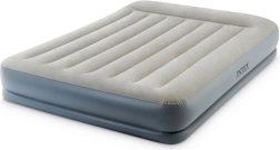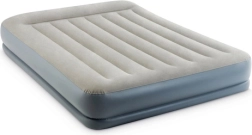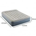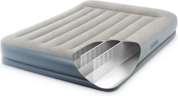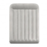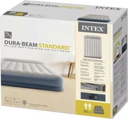 Saltea gonflabilă dublă INTEX cu tehnologia Dura-Beam Fiber-Tech oferă susținere fermă, suprafață catifelată din velur și umflare/degonflare rapidă datorită pompei electrice integrate în aproximativ 3 minute. Ideală ca pat confortabil pentru oaspeți, pentru casă sau camping, cu capacitate de până la 272 kg și depozitare ușoară.
