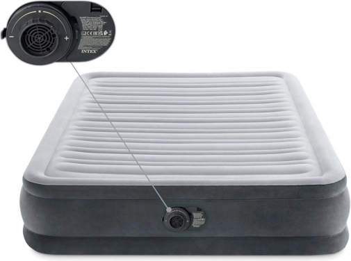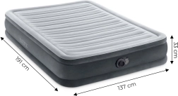 Salteaua gonflabilă INTEX este ideală ca pat suplimentar confortabil pentru oaspeți sau pentru camping. Pompa integrată de 220–240 V asigură umflare rapidă în aproximativ 4,5 minute și dezumflare automată fără efort. Suprafața din velur este moale la atingere, în timp ce PVC-ul rezistent oferă durabilitate ridicată și întreținere ușoară.