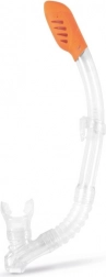 Capacul superior împotriva stropirii apei (splash guard) limitează pătrunderea apei în tub, în timp ce vârful portocaliu intens crește vizibilitatea la suprafață. Clemă/clipul pentru mască menține tubul în poziția corectă. Ideal pentru înot recreativ și snorkeling pentru copii de la 8 ani.