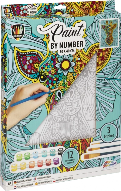 Descoperă relaxarea prin creativitate cu setul de pictură după numere cu motiv de girafă. Pânză întinsă pe cadru, de 30 × 40 cm, zone numerotate clar, vopsele acrilice și 3 pensule îți permit să obții ușor un rezultat impresionant – ideal pentru începători și avansați.