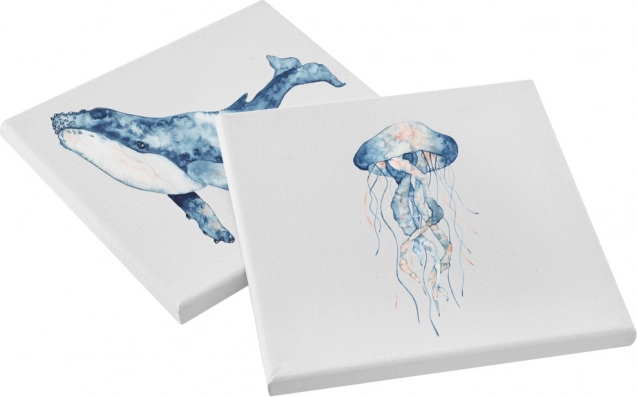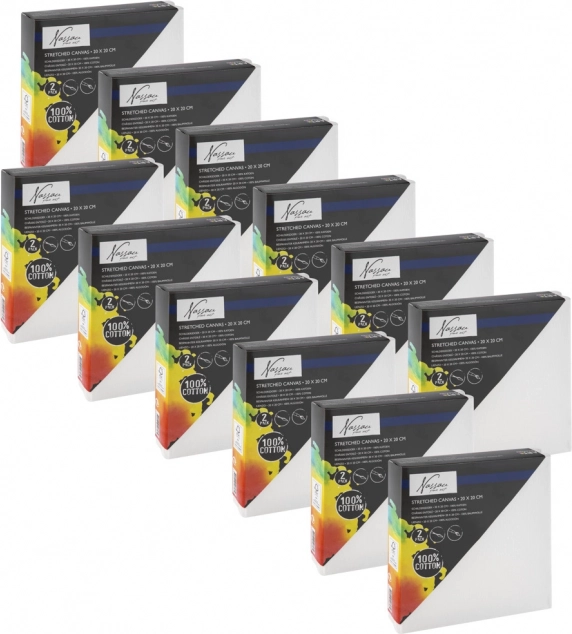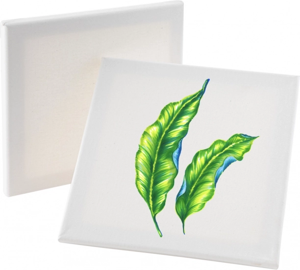 Pânzele universale din bumbac 20 × 20 cm sunt preîntinse pe șasiu și gata de utilizare, astfel încât poți începe imediat creația. Textura fină a fibrei asigură aderență bună a culorilor și tușe curate de pensulă.