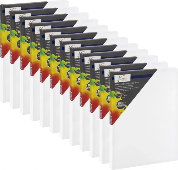 Această pânză de pictură de calitate, 30 × 40 cm, este realizată din 100% bumbac și întinsă pe un cadru tip blind din lemn solid. Datorită gramajului echilibrat și texturii fine, este o alegere excelentă atât pentru începători, cât și pentru pictori avansați care caută o suprafață fiabilă pentru creația de zi cu zi.
