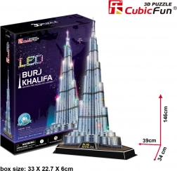 Descoperă farmecul arhitecturii moderne cu un model 3D detaliat al celei mai înalte clădiri din lume – Burj Khalifa. Datorită iluminării LED integrate, modelul prinde viață după lăsarea serii și îți transformă camera într-un mic Dubai. Piesele solide din spumă, cu imprimeu laminat, garantează rezistență și un aspect frumos, fără a fi nevoie de lipici.