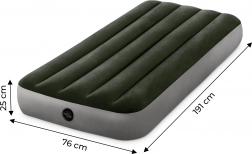 Bucurați-vă de confort în călătorii sau acasă cu această saltea gonflabilă de la marca Intex. Cu dimensiunile 191x76x25 cm este perfectă pentru copii sau persoane singure în călătorii, fie la hotel sau camping. Fabricată din PVC durabil și acoperită cu velur rezistent la apă.