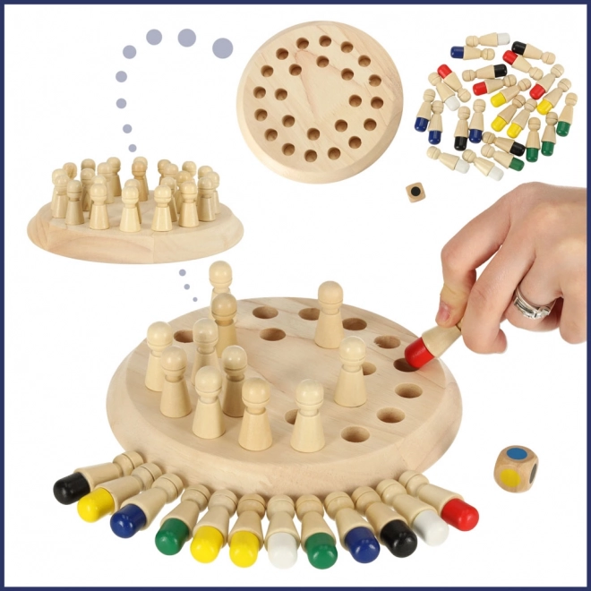 Descoperă un joc din lemn distractiv care antrenează memoria, atenția și gândirea logică. Pinii colorați, zarul cu culori și tabla circulară compactă creează o activitate ideală pentru familie. Fabricat din lemn natural cu vopsele pe bază de apă, sigure – excelent și pentru adepții abordării Montessori.